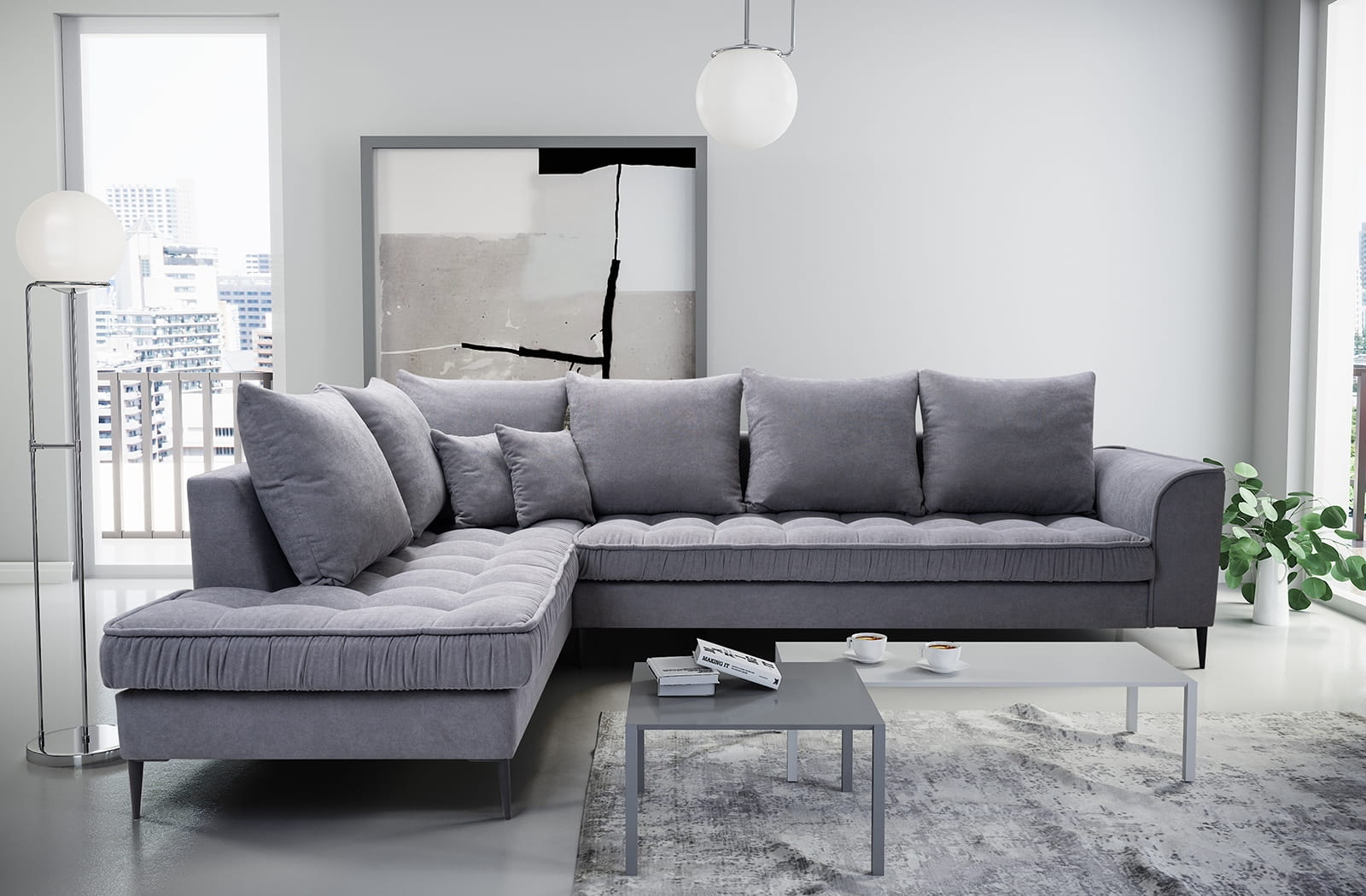 Tapicerowane narożniki maja wielką moc aranżacyjną. W tym przypadku jeden, dobrze wybrany mebel może odmienić całe wnętrze. Elegancki i komfortowy narożnik L1 to świetny wybór dla osób ceniących takie zalety, łatwo go wkomponować w każdą przestrzeń. Odnajdzie się w otoczeniu utrzymanym w stylu nowoczesnym, klasycznym, skandynawskim, loftowym czy glamour. Pasuje do salonów, pokojów gościnnych, szykownych poczekalni czy recepcji hotelowych.