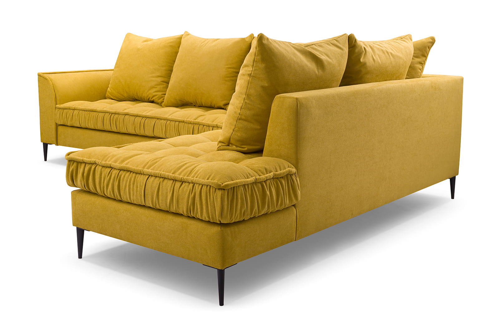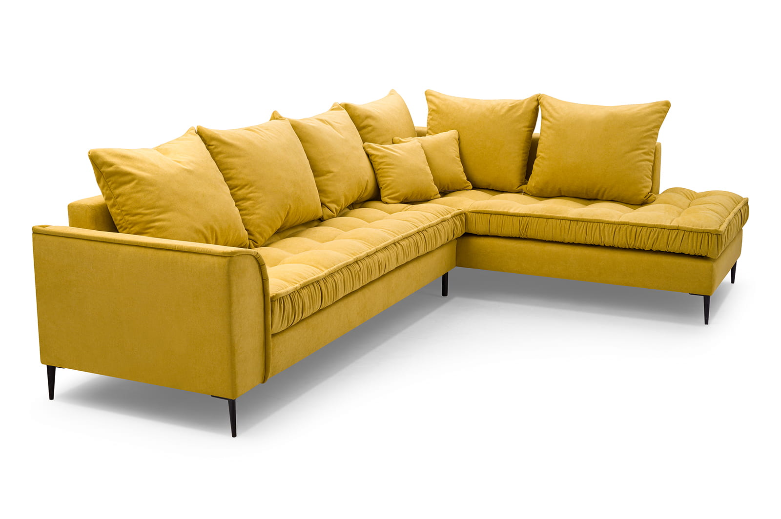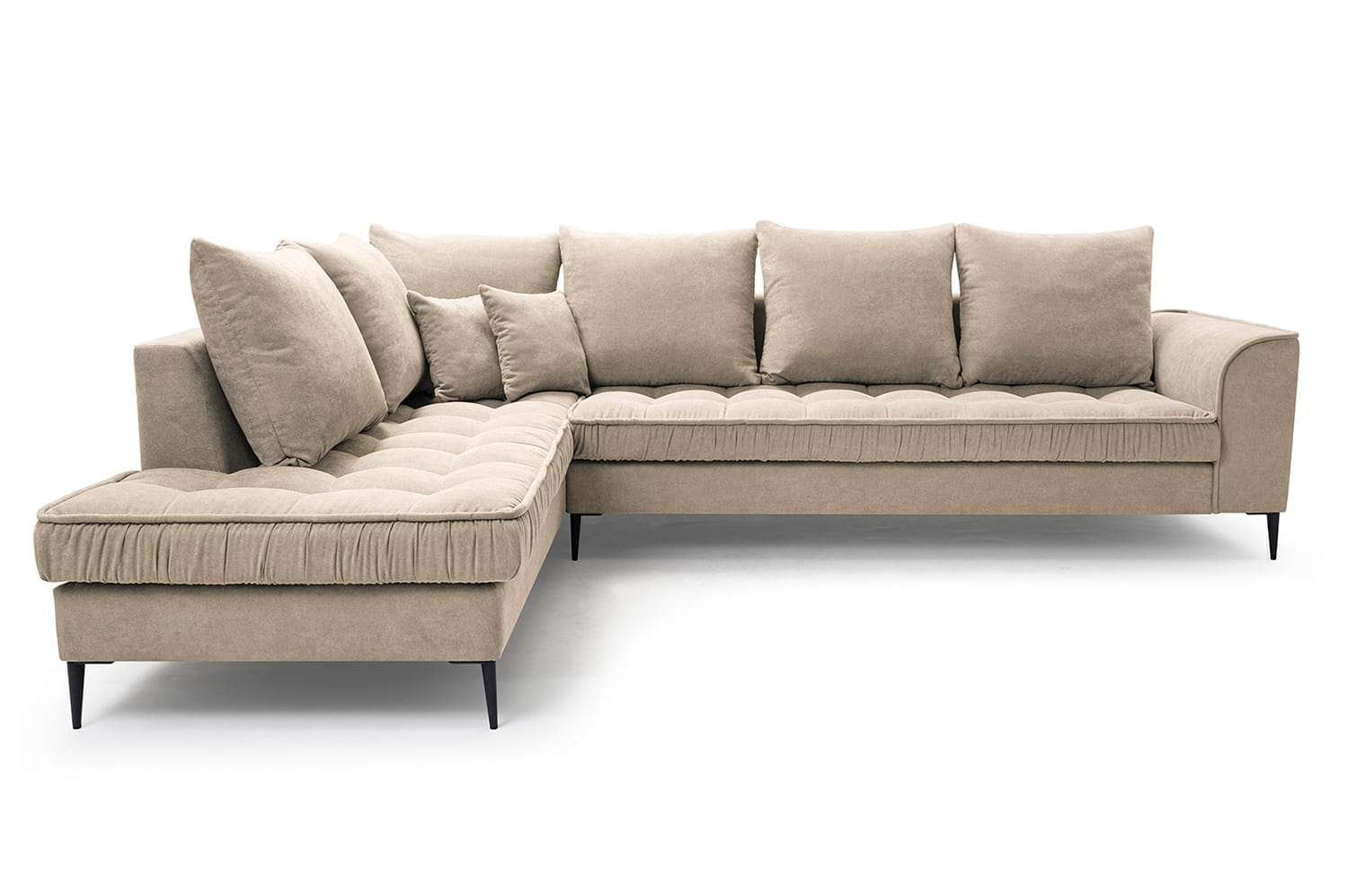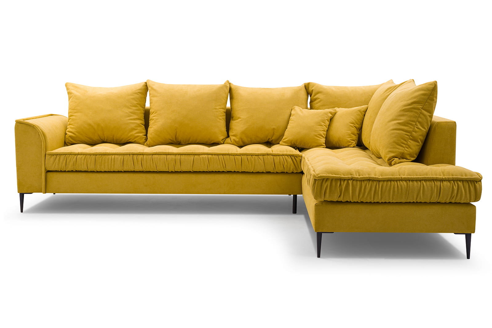 Stylowy narożnik L z drewnianym stelażem i metalowymi nóżkami, wybór kolorów, L1