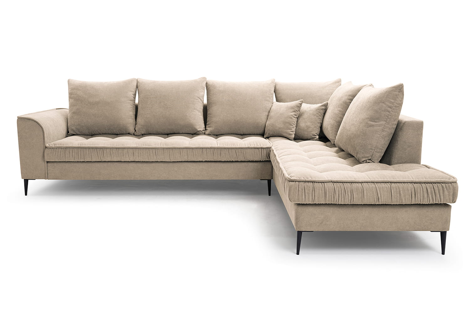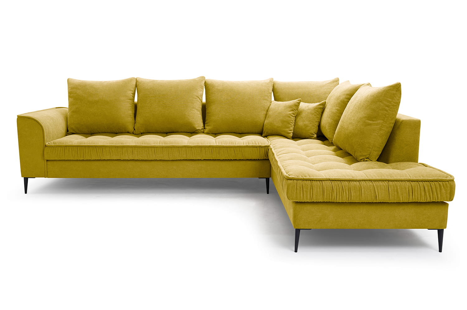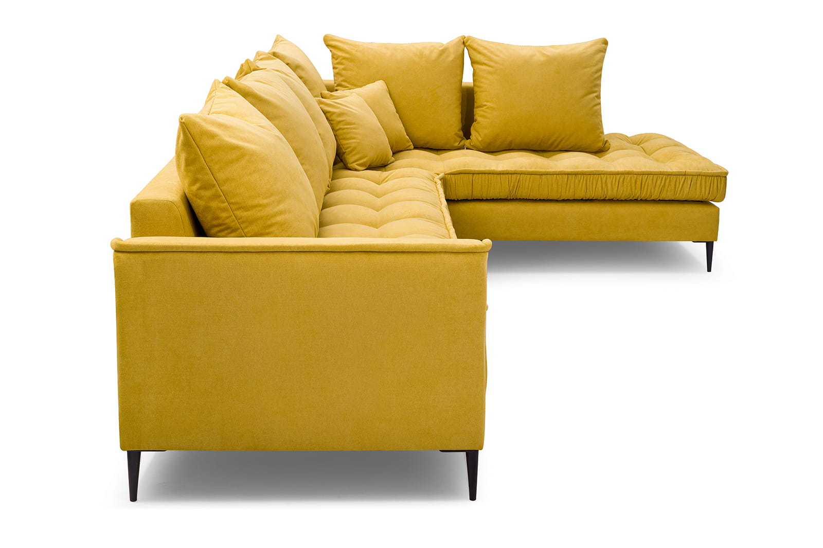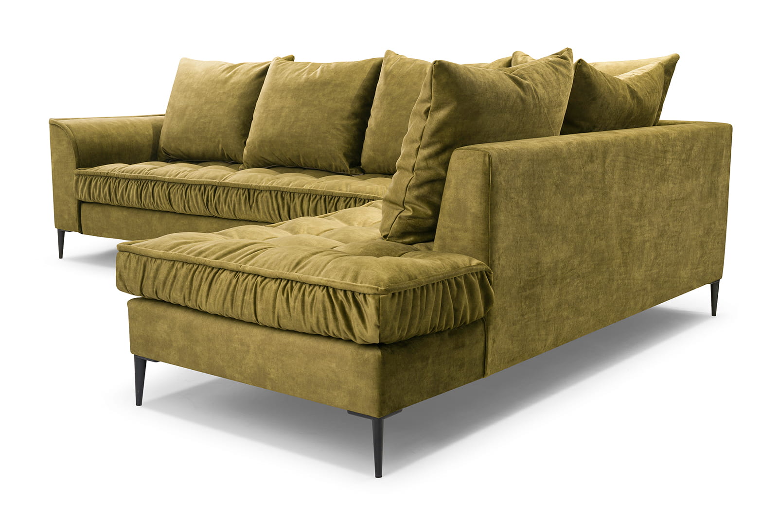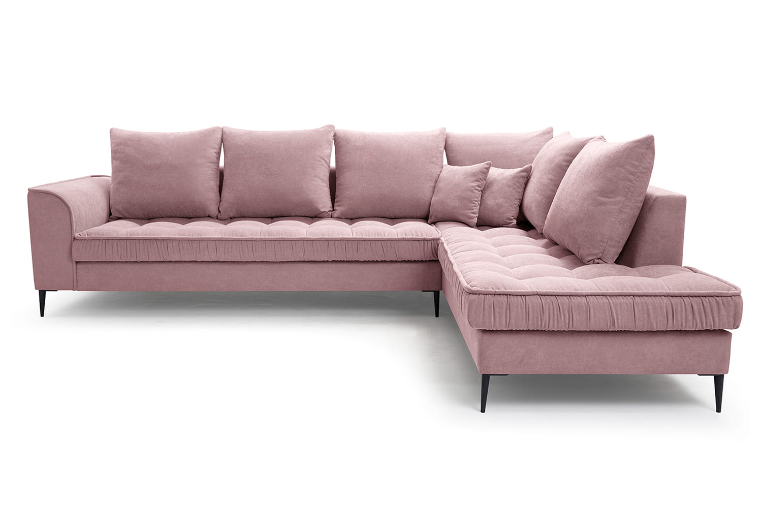 Stylowy narożnik L z drewnianym stelażem i metalowymi nóżkami, wybór kolorów, L1