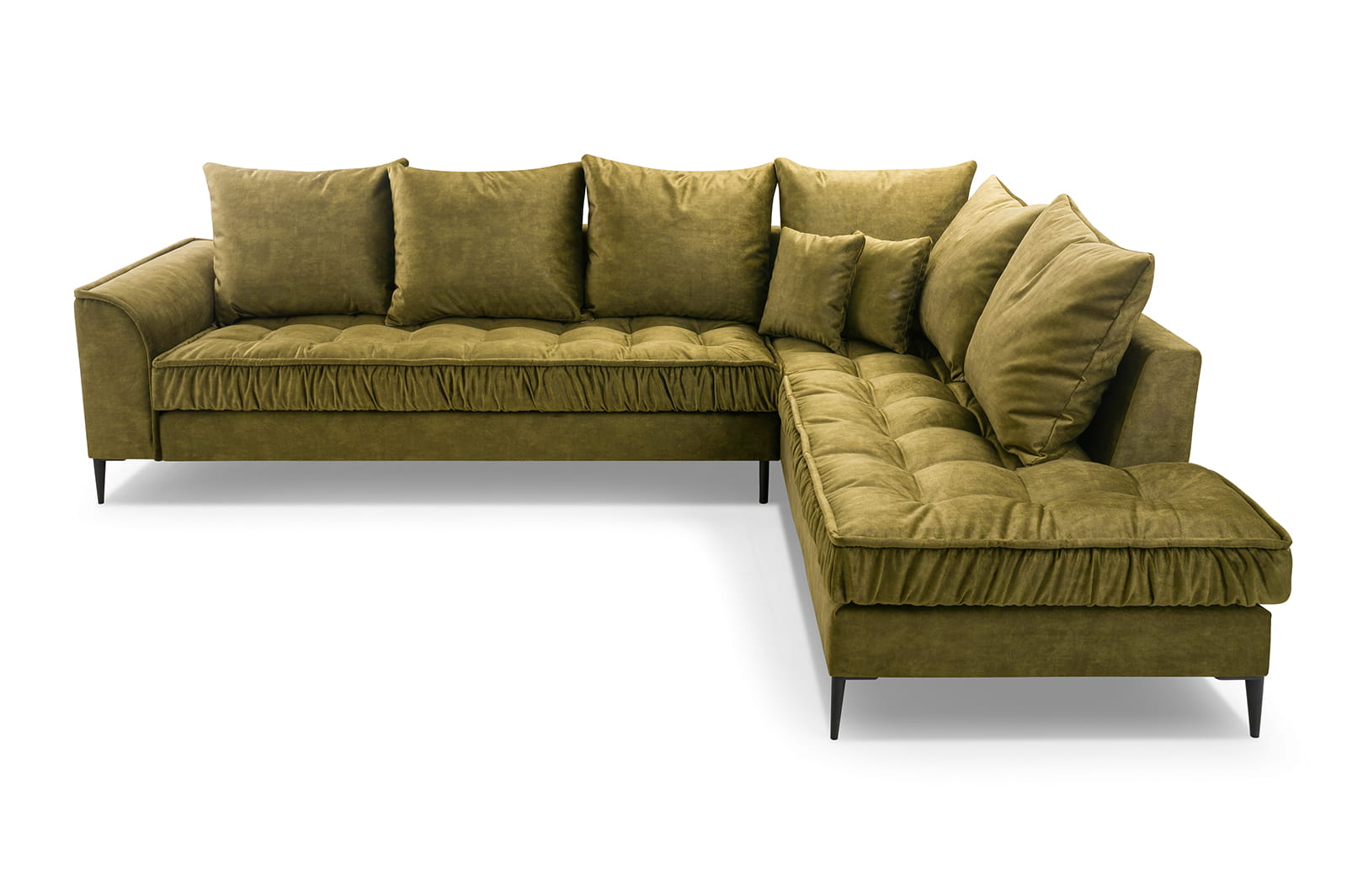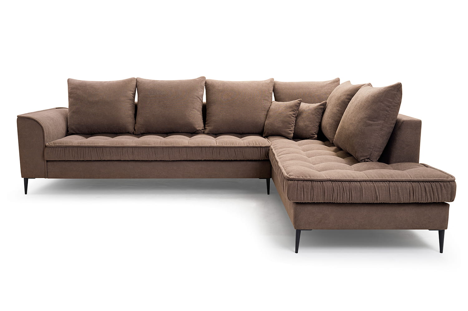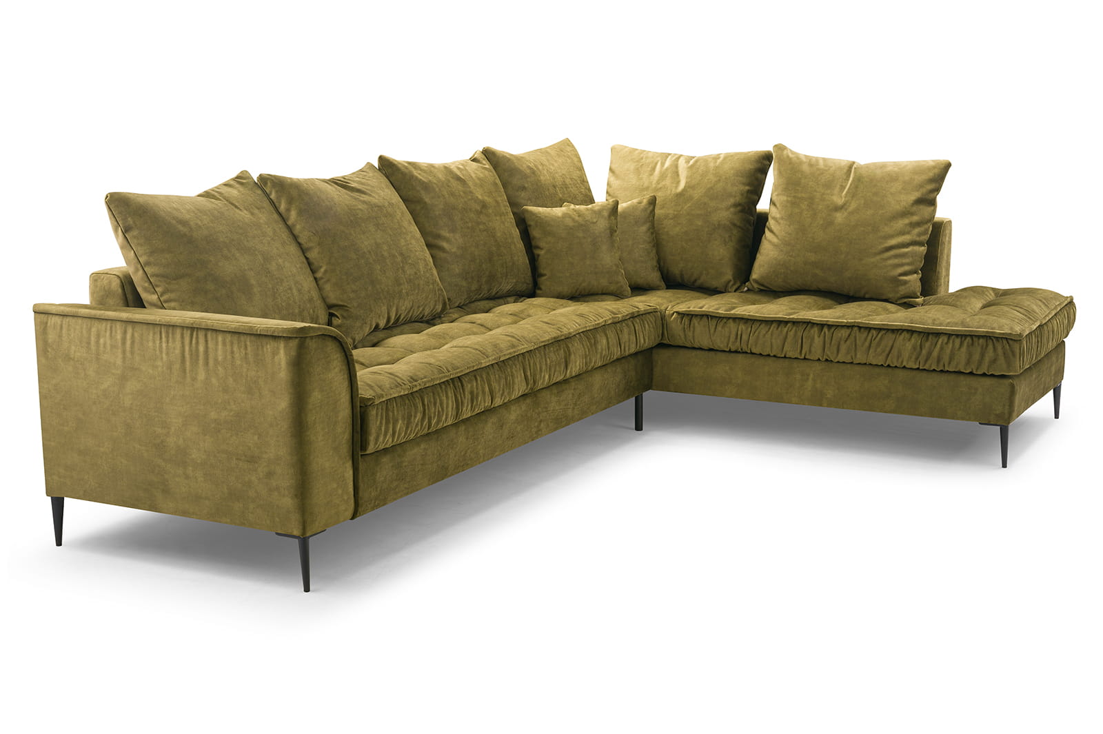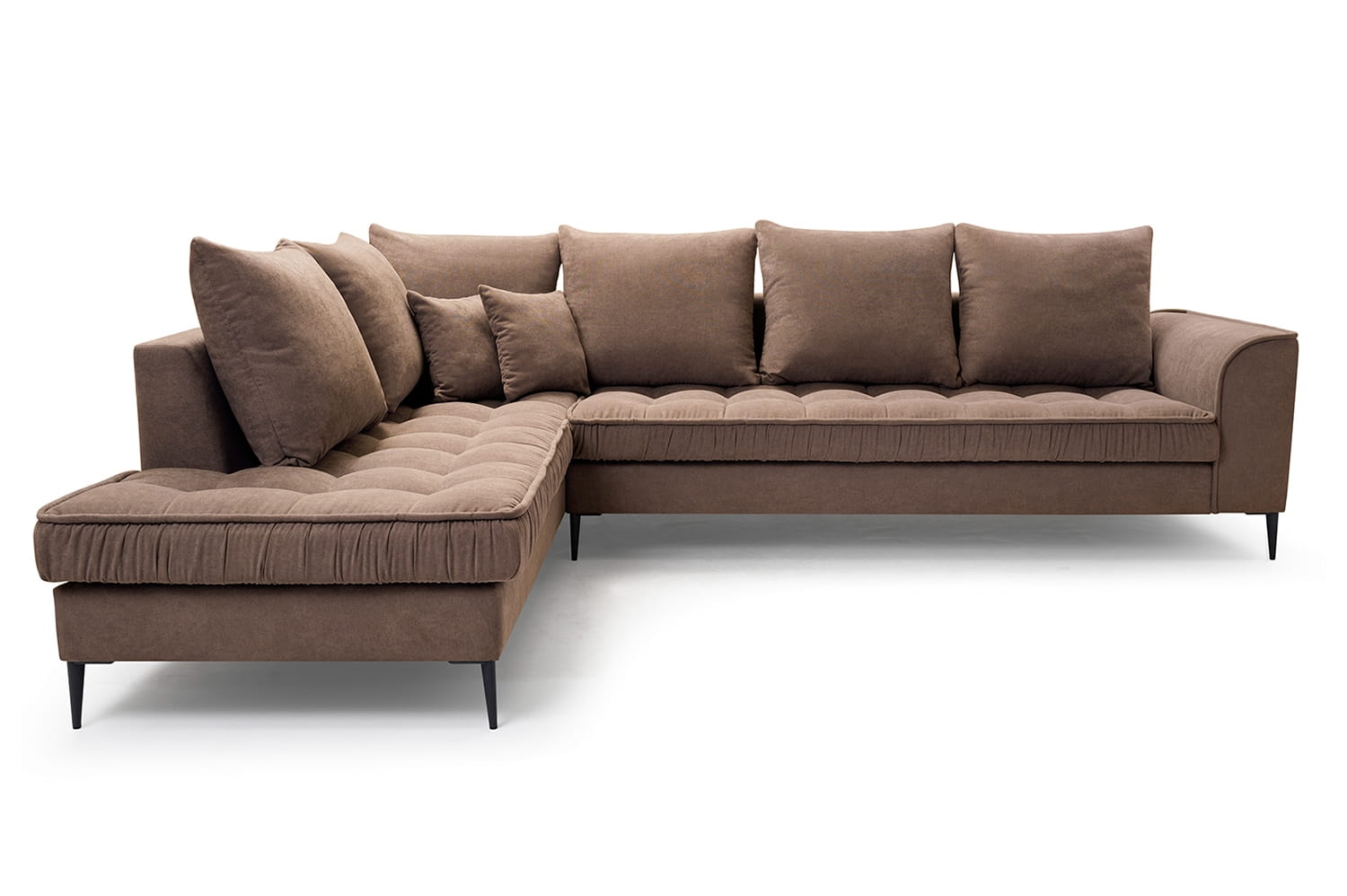 Stylowy narożnik L z drewnianym stelażem i metalowymi nóżkami, wybór kolorów, L1