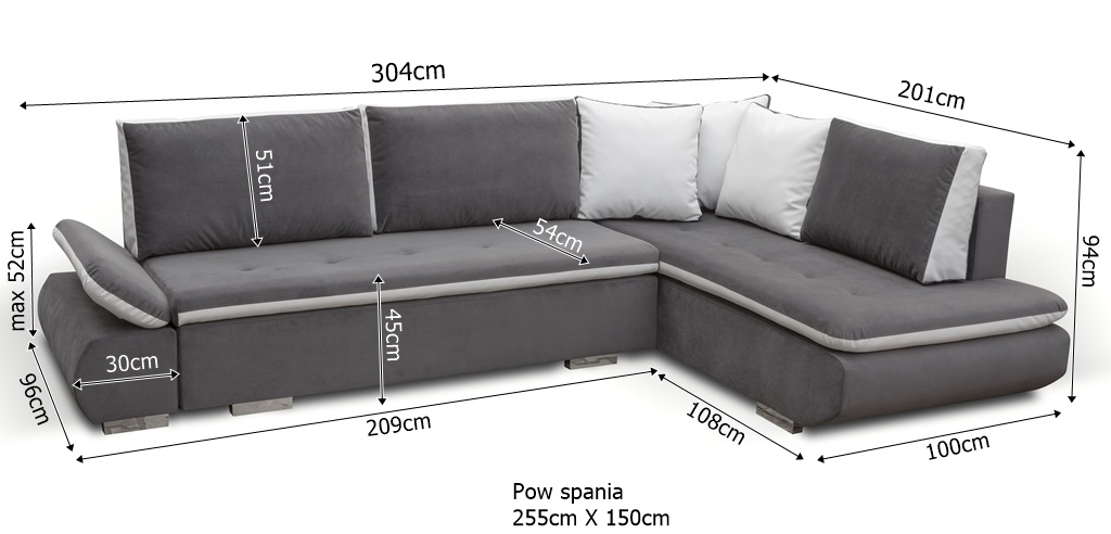 Idealny mebel wypoczynkowy po pierwsze świetnie wygląda a po drugie daje nam dodatkowe miejsce do spania. Nowoczesny narożnik AV14 jest funkcjonalnym elementem wyposażenia, zaprojektowanym z myślą o komforcie podczas odpoczynku ale też będącym szykowną ozdobą wnętrza. Wykonany został z wytrzymałych, trwałych materiałów, a wszystkie rozwiązania jakie w nim zastosowano mają tylko jeden cel- jak największe zadowolenie użytkownika. Po rozłożeniu uzyskana w ten sposób powierzchnia do spania jest równomierna i sprężysta. Pojemnik na pościel daje nam dodatkowe miejsce do przechowywania, co zawsze jest pożądaną opcją. Wybór kolorów umożliwia dopasowania narożnika do własnych potrzeb aranżacyjnych. Decydując się na zakup rozkładanego narożnika AV14 zyskasz: