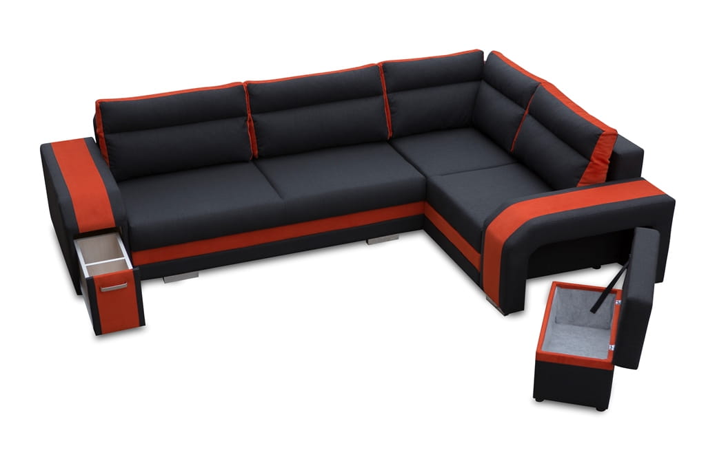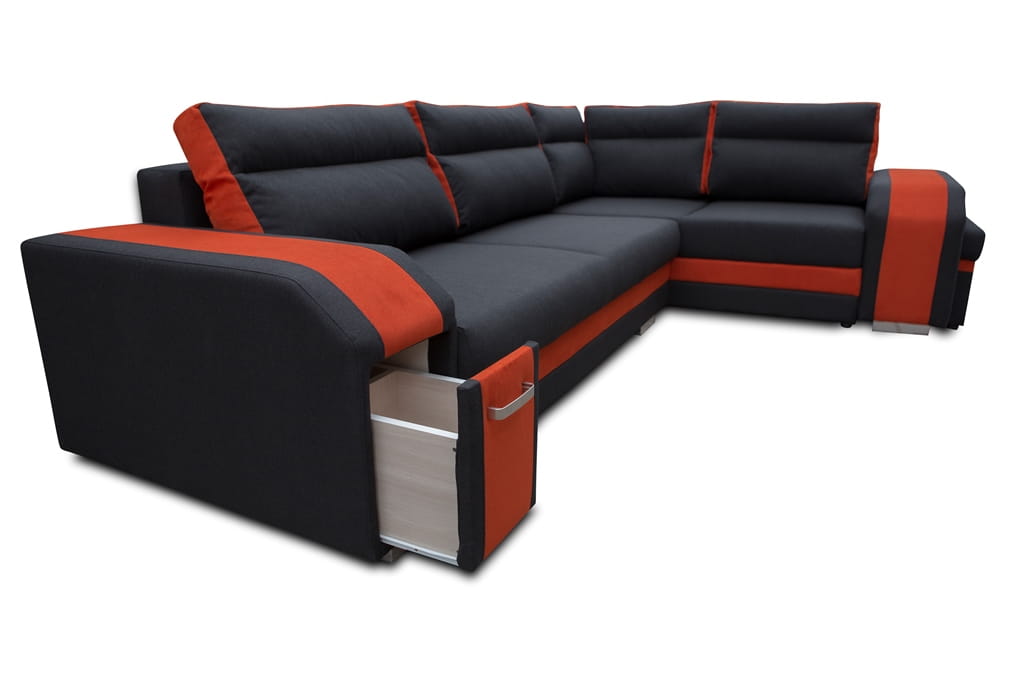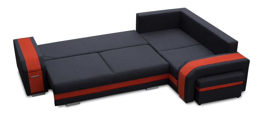 Idealny mebel wypoczynkowy po pierwsze świetnie się prezentuje a po drugie daje nam dodatkowe miejsce do spania. Nowoczesny narożnik AV17 jest funkcjonalnym elementem wyposażenia, zaprojektowanym z myślą o komforcie podczas odpoczynku ale też będącym szykowną ozdobą wnętrza. Wykonany został z wytrzymałych, trwałych materiałów, a wszystkie rozwiązania jakie w nim zastosowano mają tylko jeden cel- jak największe zadowolenie użytkownika. Po rozłożeniu uzyskana w ten sposób powierzchnia do spania jest równomierna i sprężysta. Pojemniki na pościel dają nam dodatkowe miejsce do przechowywania, co zawsze jest pożądaną opcją. Wybór kolorów umożliwia dopasowania narożnika do własnych potrzeb aranżacyjnych. Decydując się na zakup rozkładanego narożnika AV17 zyskasz: