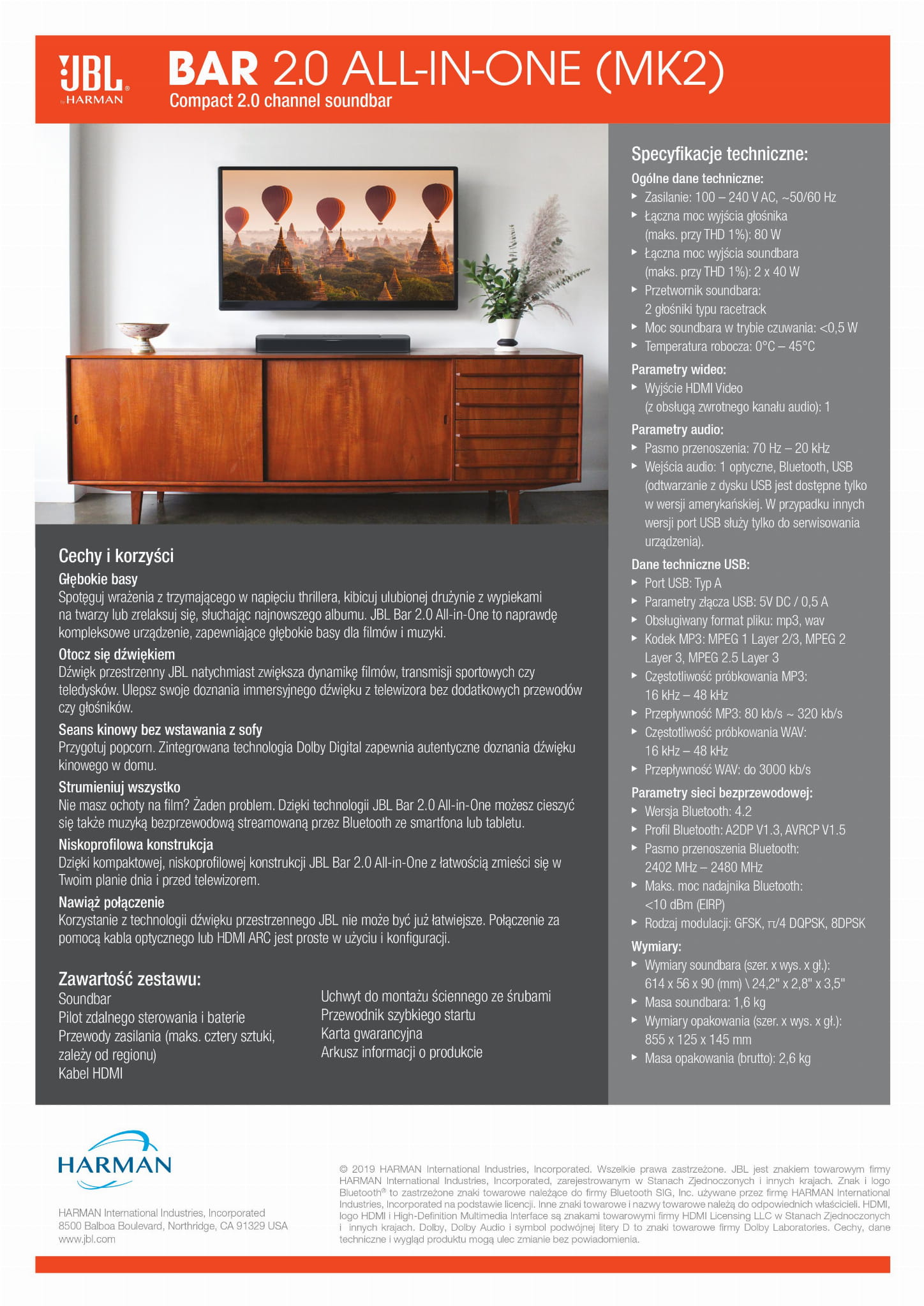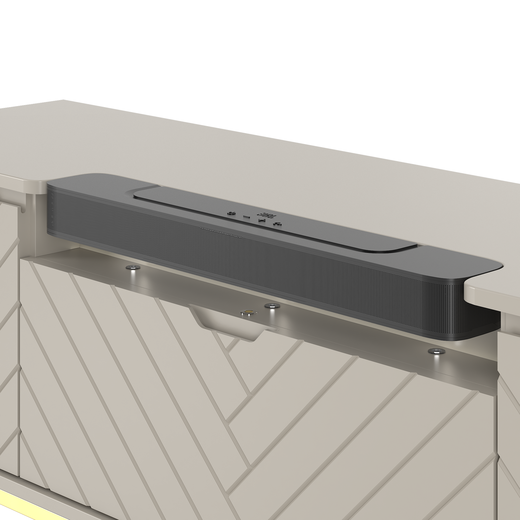 - w środkowej części szafki zamontowano soundbar marki JBL, dzięki któremu poczujesz się jak w kinie bez wychodzenia z domu i bezprzewodowo sterowaną muzyką kiedy tylko masz na to ochotę
