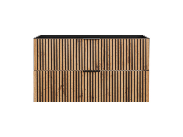 Szafka łazienkowa z szufladami, ryflowane fronty w kolorze dąb wotan 100 cm MARITE
