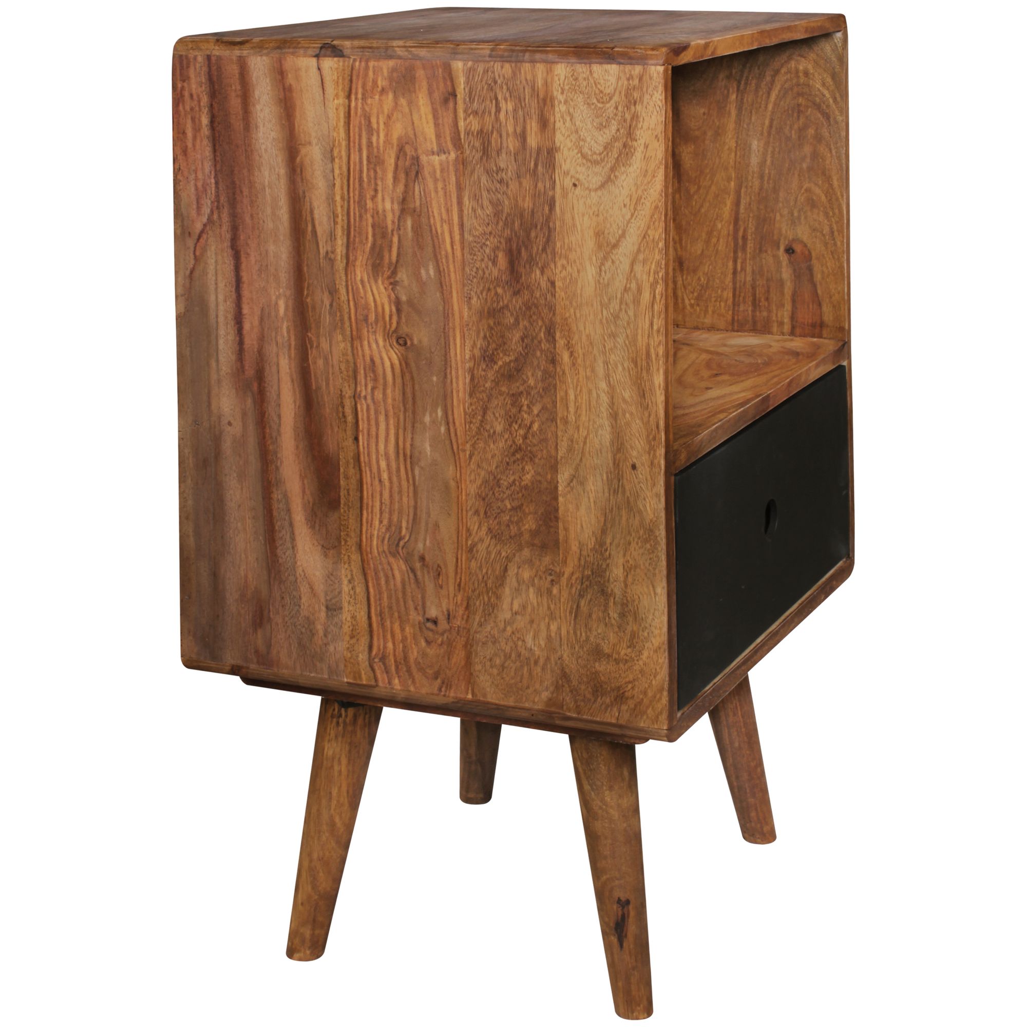Szafka nocna z drewna sheesam z czarną szufladą, LUBO