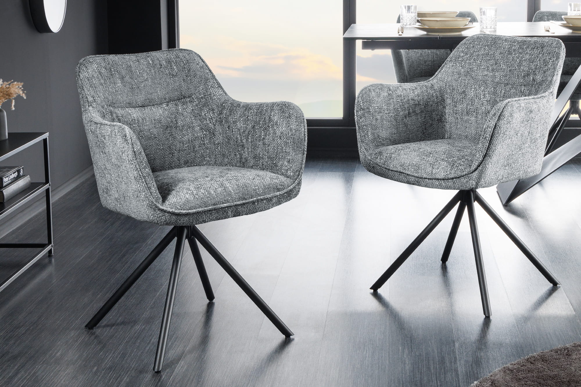 Tapicerowane krzesło obrotowe na metalowych nogach, jasnoszare SCYNTIA