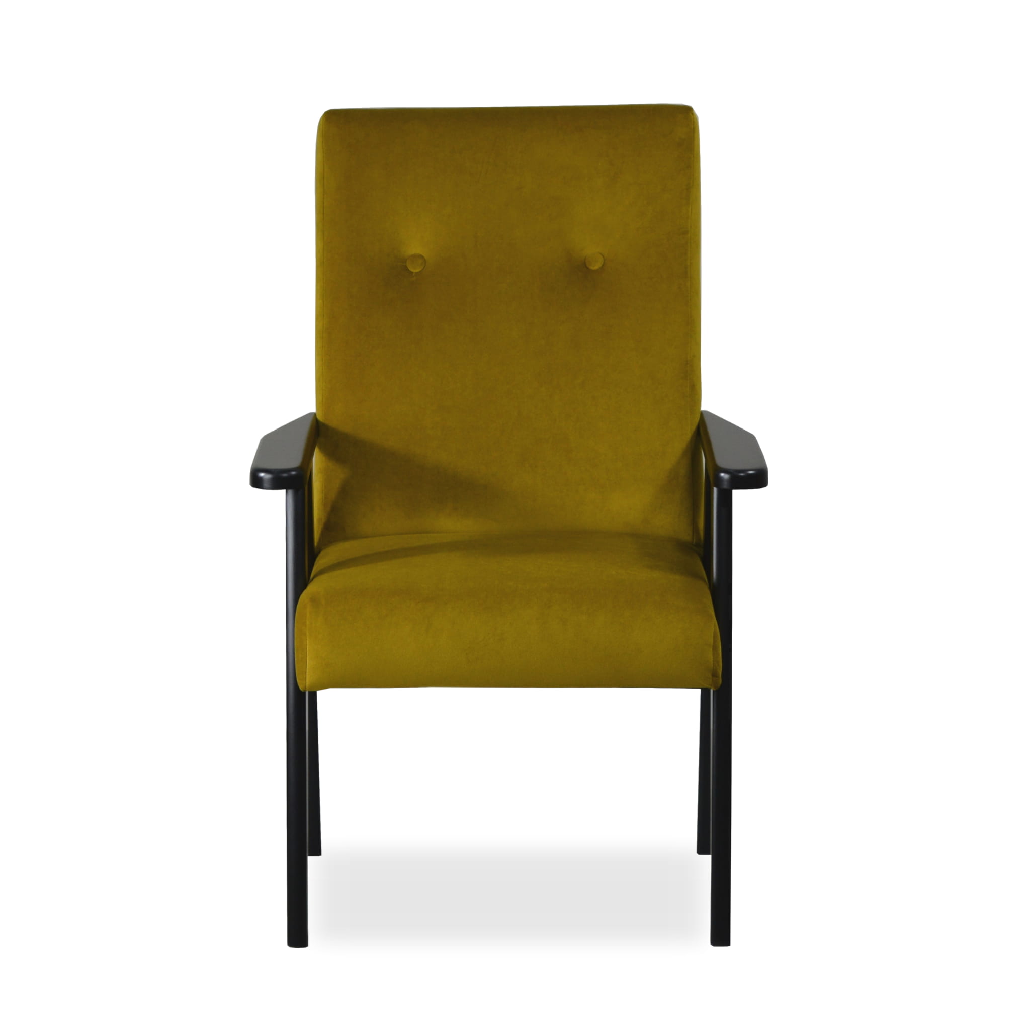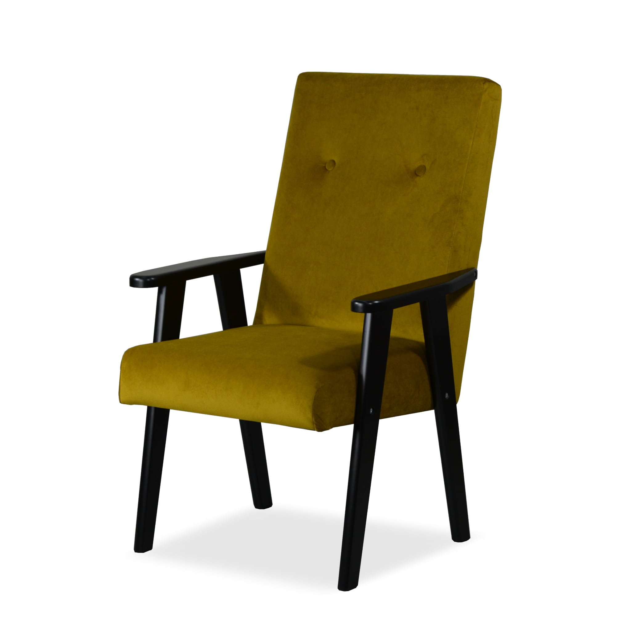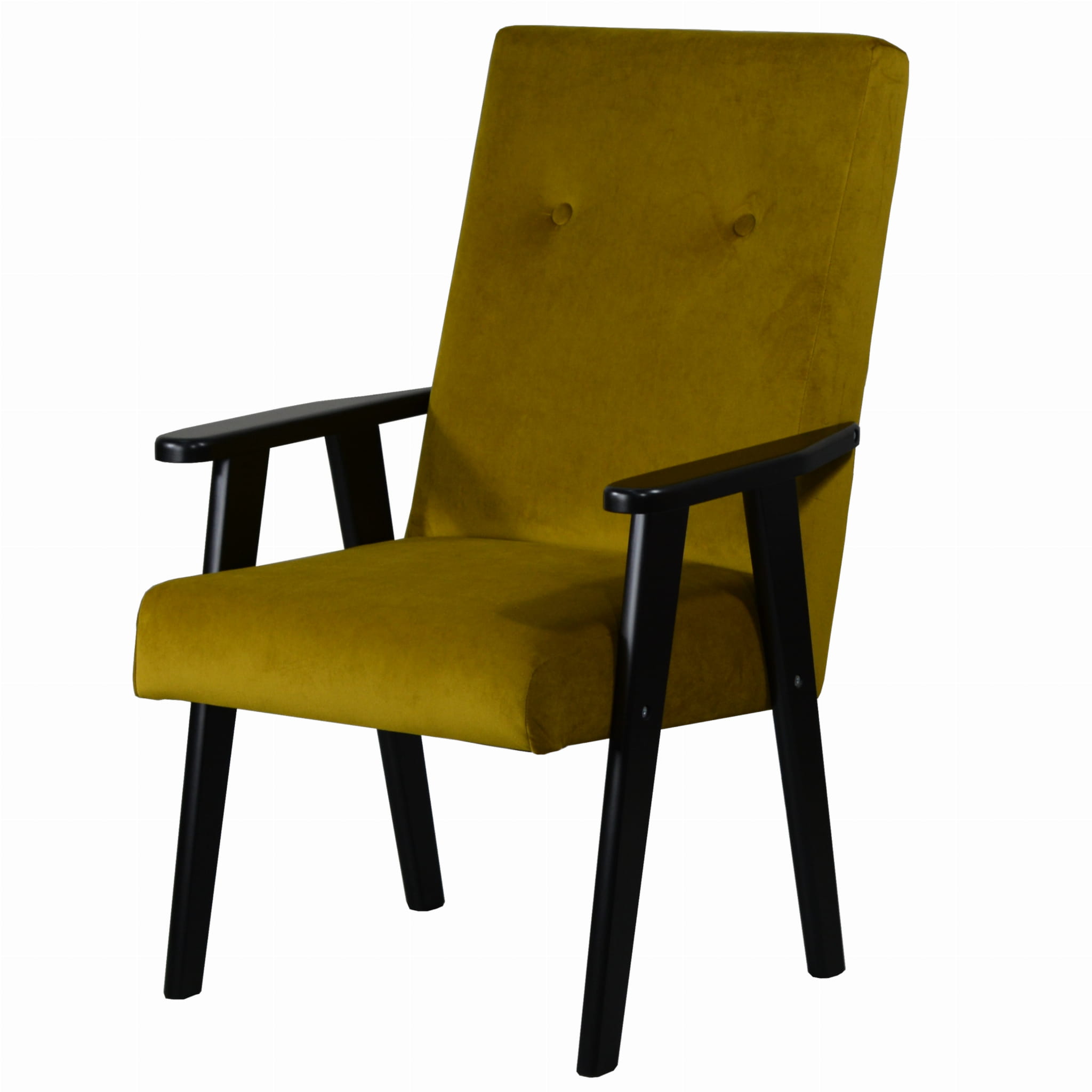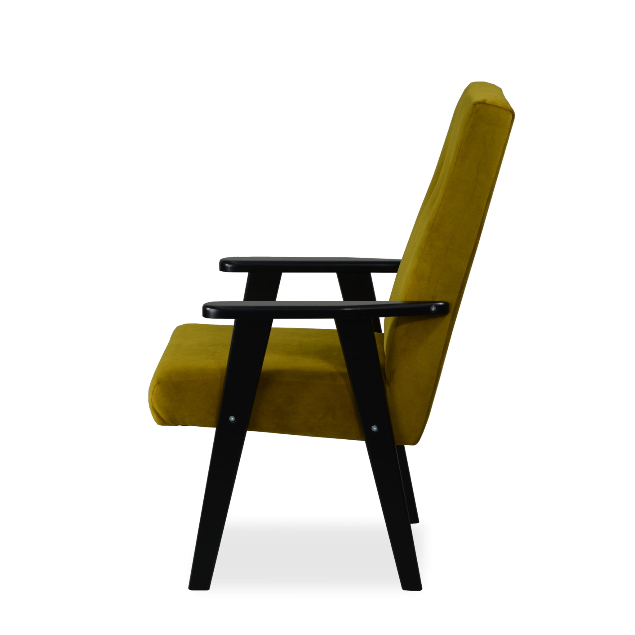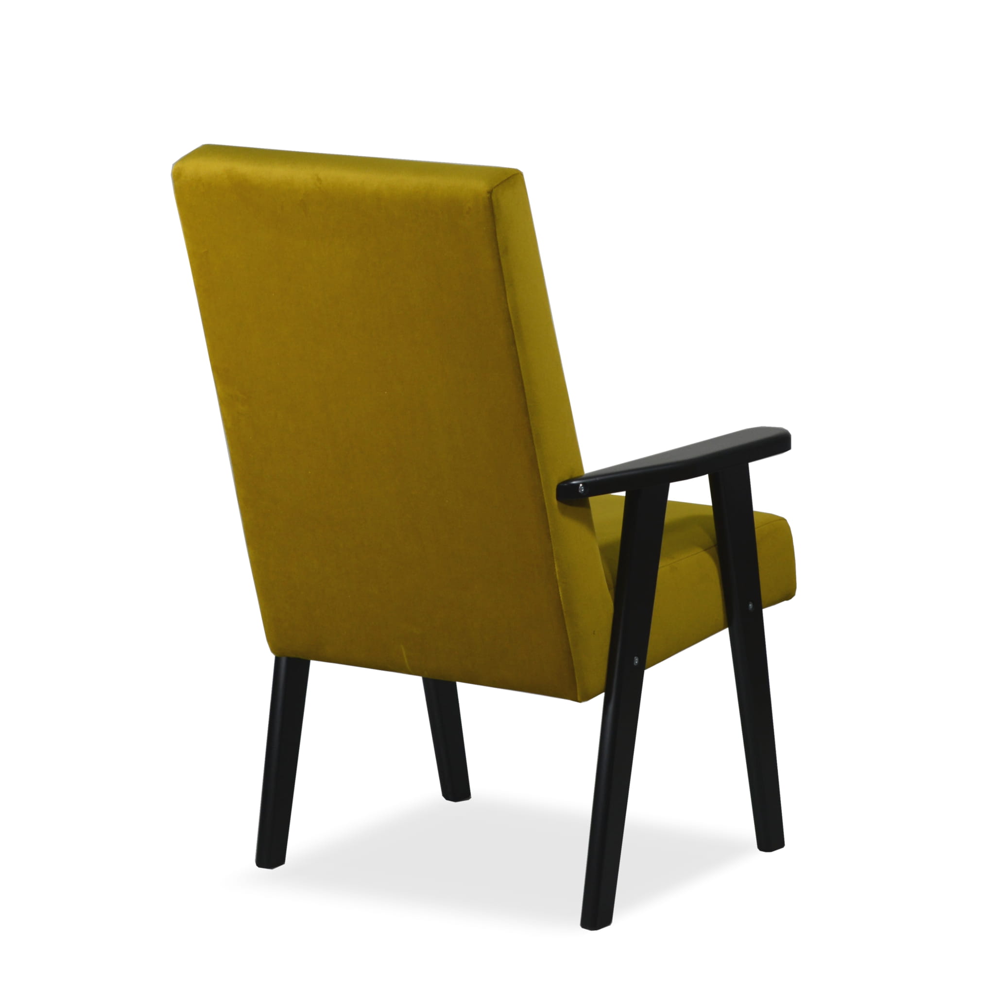 Tapicerowany fotel Retro II złoty, wybór koloru drewnianych nóg